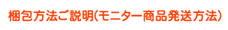 上の商品はお客様への発送を想定して撮影さたものですがモニターの方へも同じ方法で発送させて頂きますがモニターをして頂く商品に関しましてはご登録時にご希望をされた商品を発送しますので写真と違いはございます。