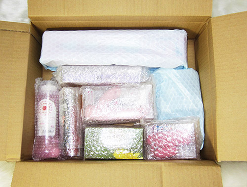 商品の発送は「無地の箱」で、内容物表記には「化粧品」や「雑貨」などで配送できます。
